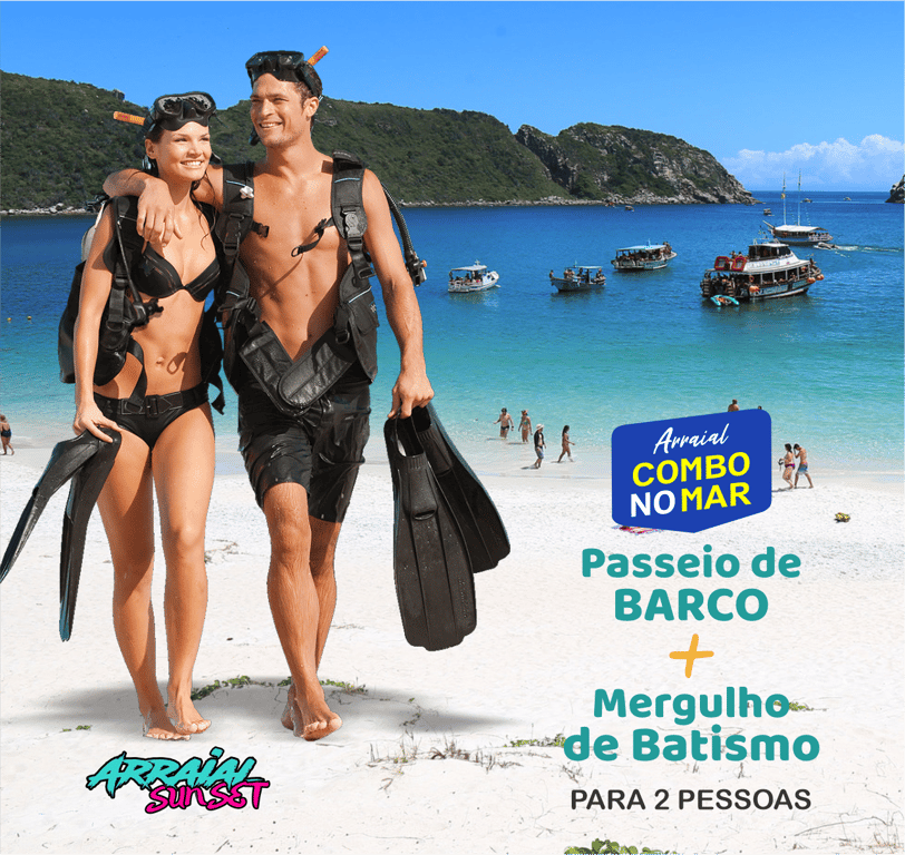 Conduzido(a) por um instrutor de mergulho, você fará uma excursão subaquática em Arraial do Cabo RJ.