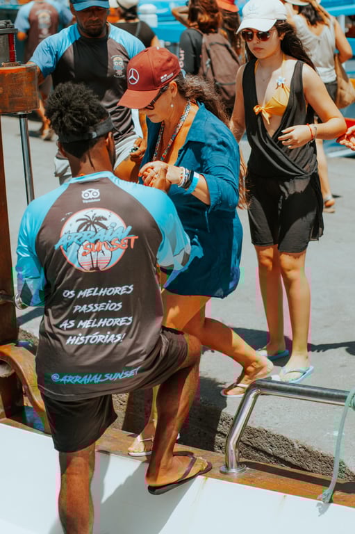 5.2. A equipe da Arraial Sunset é responsável por fornecer instruções de segurança antes do embarque e por supervisionar as atividades durante o passeio.